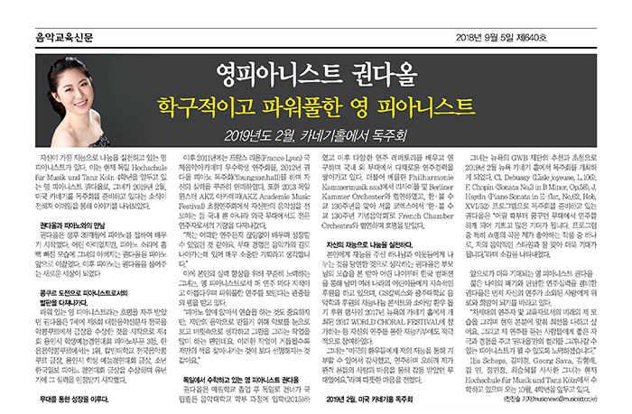 영 피아니스트 권다올 - 학구적이고 파워풀한 영 피아니스트